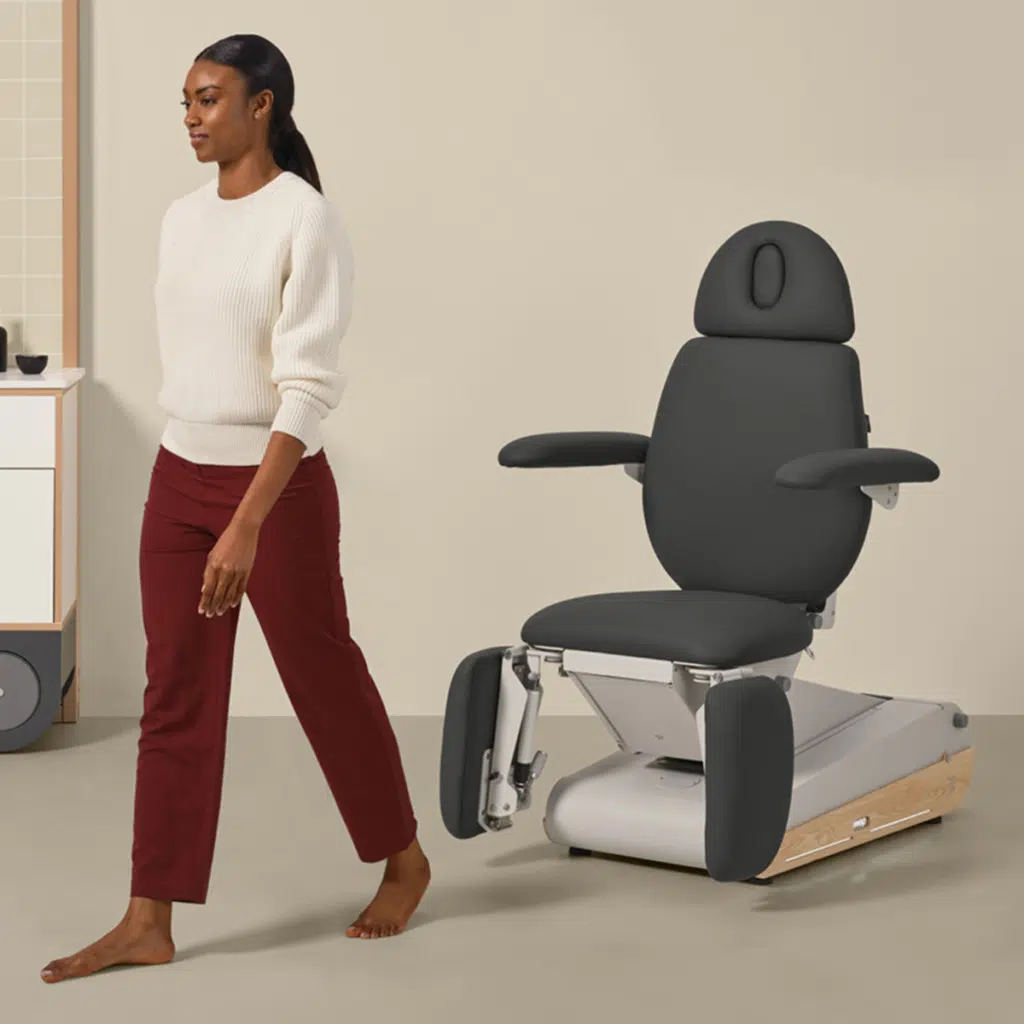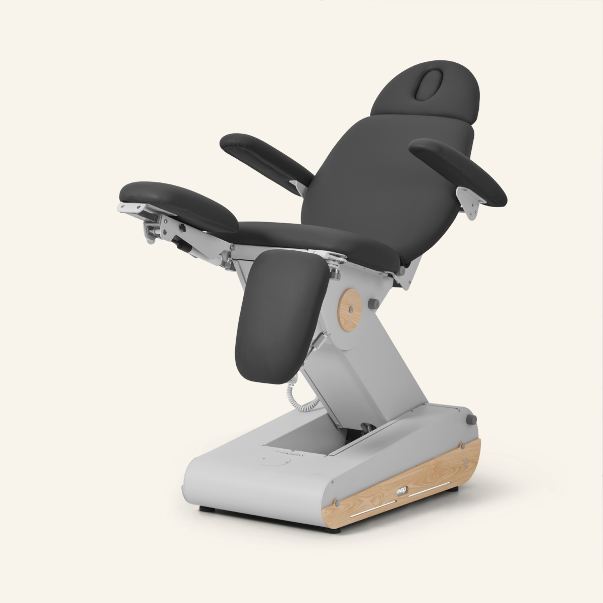 De SWOP P3 UP is een prachtige behandelstoel voor podotherapeuten, pedicures en tatoeëerders. Bladverwarming, comfortabele polstering, verstelbare armsteunen en 2 gescheiden beendelen met gasveer. 3 motoren voor verstelling van hoogte, inclinatie zitdeel, rugdeel door middel van een handschakelaar en 3 geheugenposities. Uniek design met LED verlichting en verwisselbare paneeltjes in diverse kleuren en materialen (oak meegeleverd).