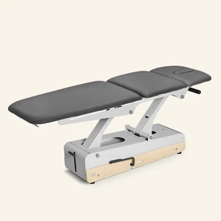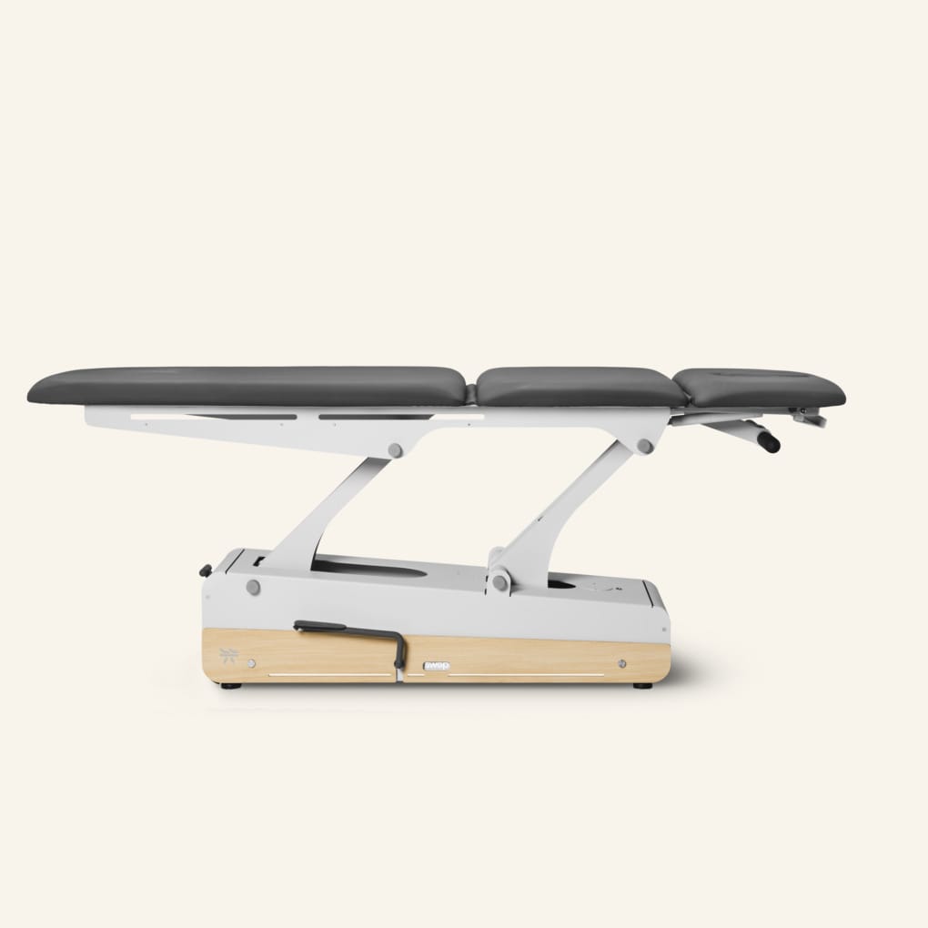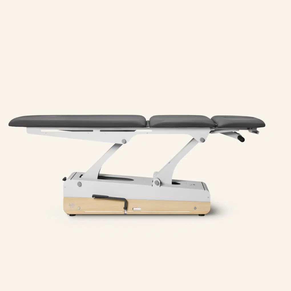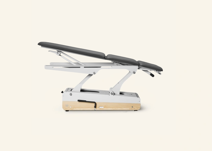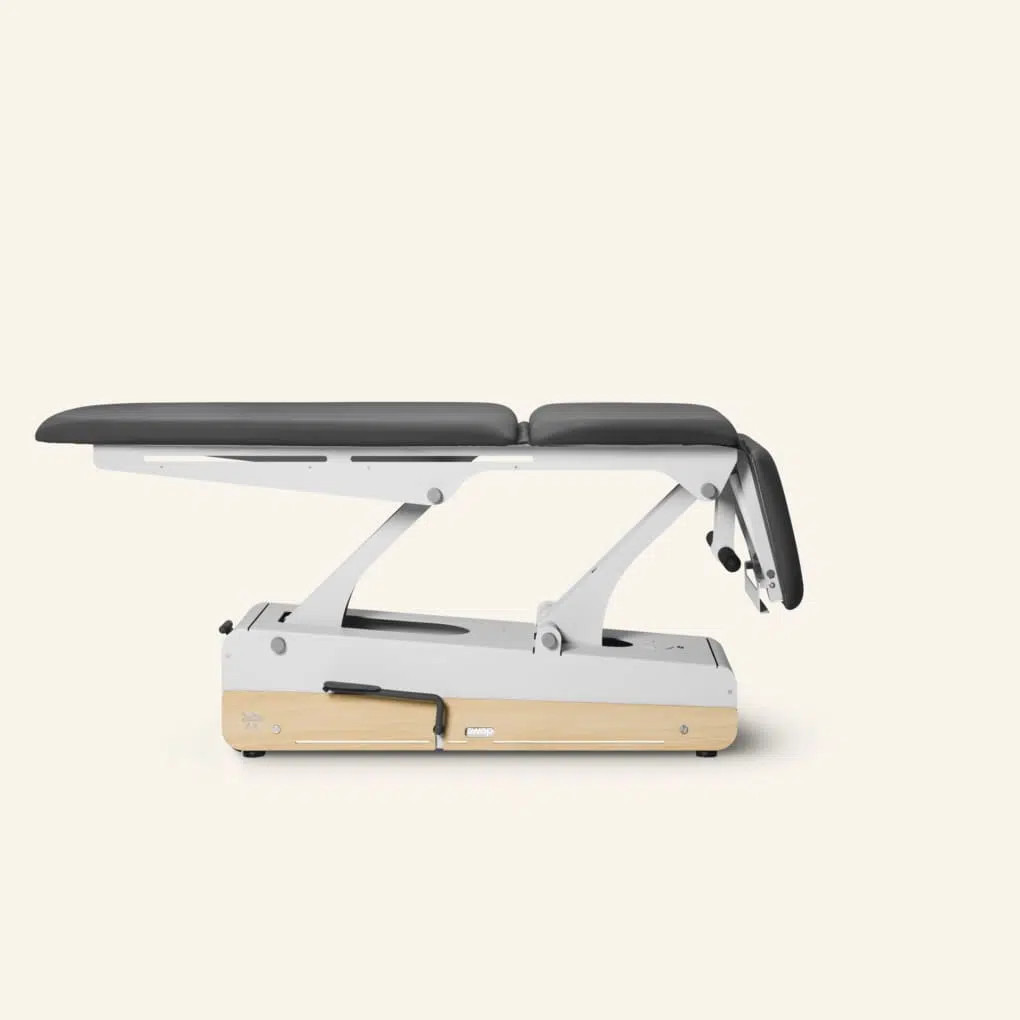 De wielen zijn onzichtbaar ingebouwd en worden centraal bediend vanuit 2 korte zijden van de bank. Zo verplaats je jouw behandeltafel eenvoudig!