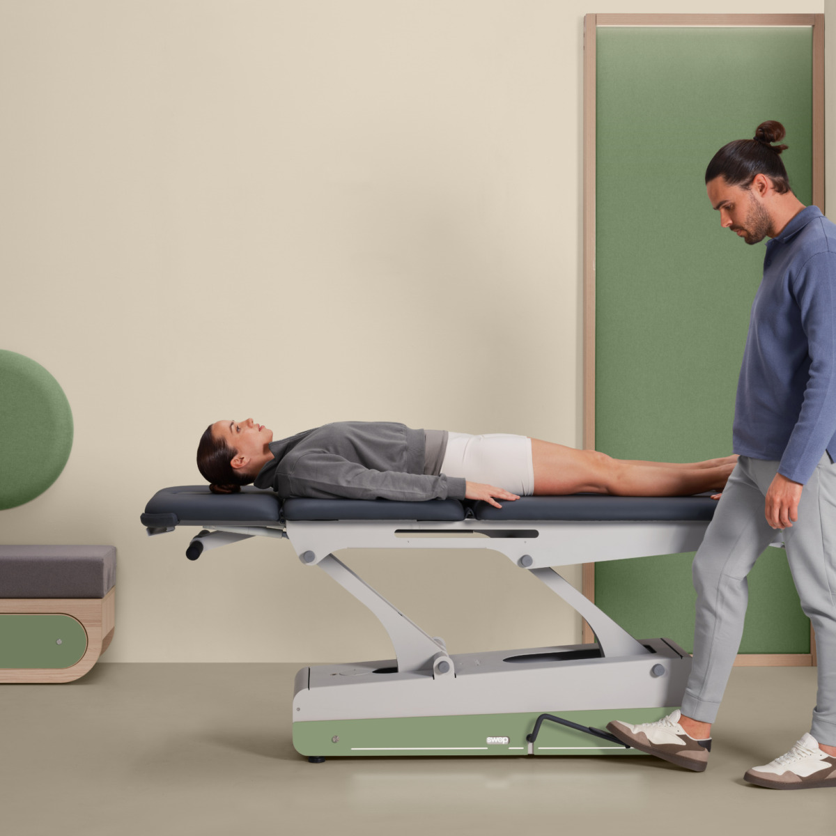 De SWOP 3F PRO Hydro is een 3-delige behandeltafel met 3 ligvakken en hydraulische hoogteverstelling. Hoofddeel met handsteunen voor een ontspannen buikligging van de patiënt. Deze tafel is bij uitstek geschikt voor opleidingsinstituten! Er is optioneel een ‘schoolpakket’ beschikbaar met houten schrijftafels en hoekbeschermers. Uniek design met verwisselbare paneeltjes in diverse kleuren en materialen (oak meegeleverd) en LED verlichting in het onderstel.