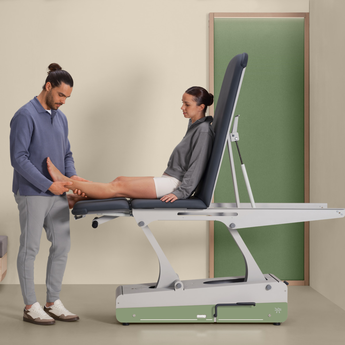 Het onderstel is standaard uitgerust met een houten paneel en sfeervolle LED verlichting. Hiermee creëer je een sfeervolle en warme ambiance in jouw behandelruimte. Extra mooi in combinatie met het verwisselbare SWOP paneel.