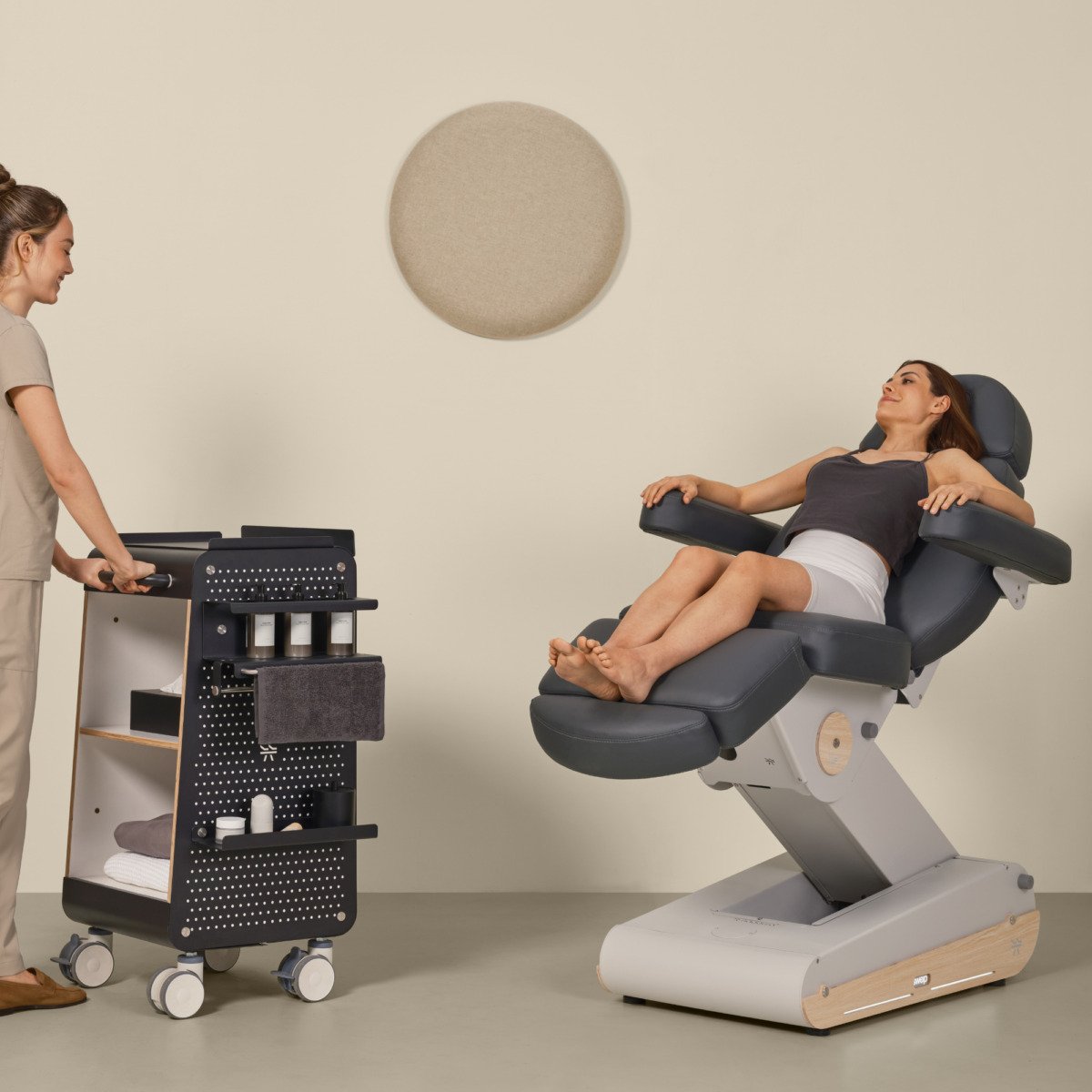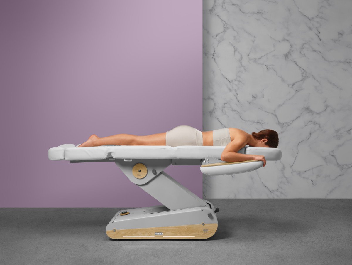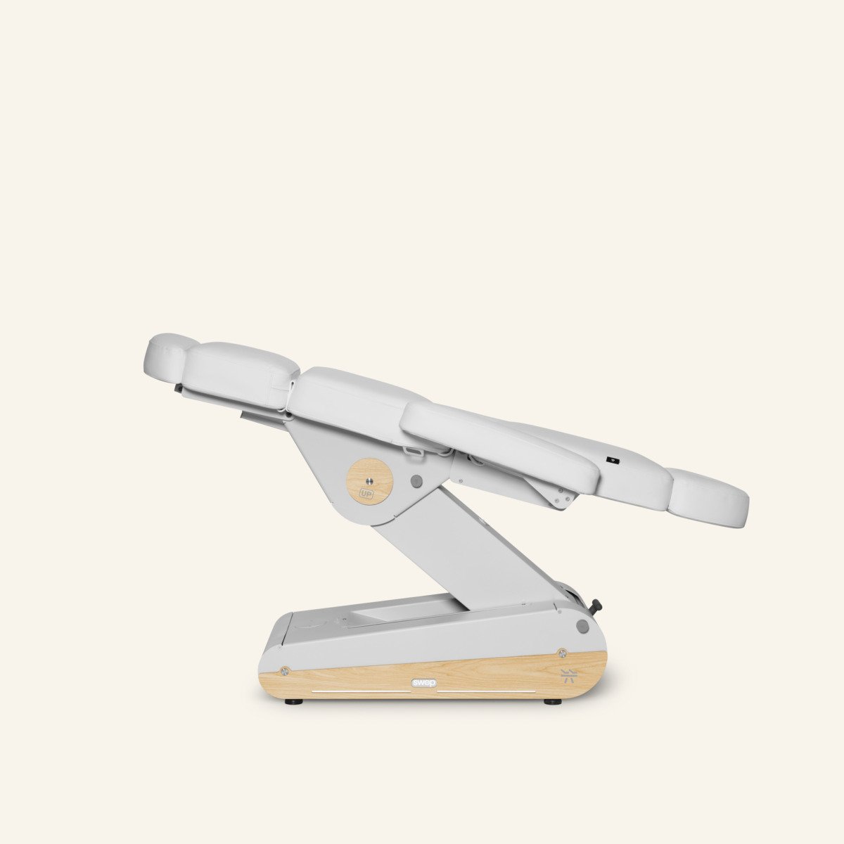 De SWOP B4 UP is een prachtige behandelstoel voor beauty / schoonheidsspecialistes. Comfortabele polstering met bladverwarming, verstelbare armsteunen en uitschuifbaar voetkussen. 4 motoren voor verstelling van hoogte, inclinatie zitdeel, rugdeel en voetdeel door middel van een handschakelaar. 3 geheugenposities. Uniek design met LED verlichting en verwisselbare paneeltjes in diverse kleuren en materialen (oak meegeleverd).
