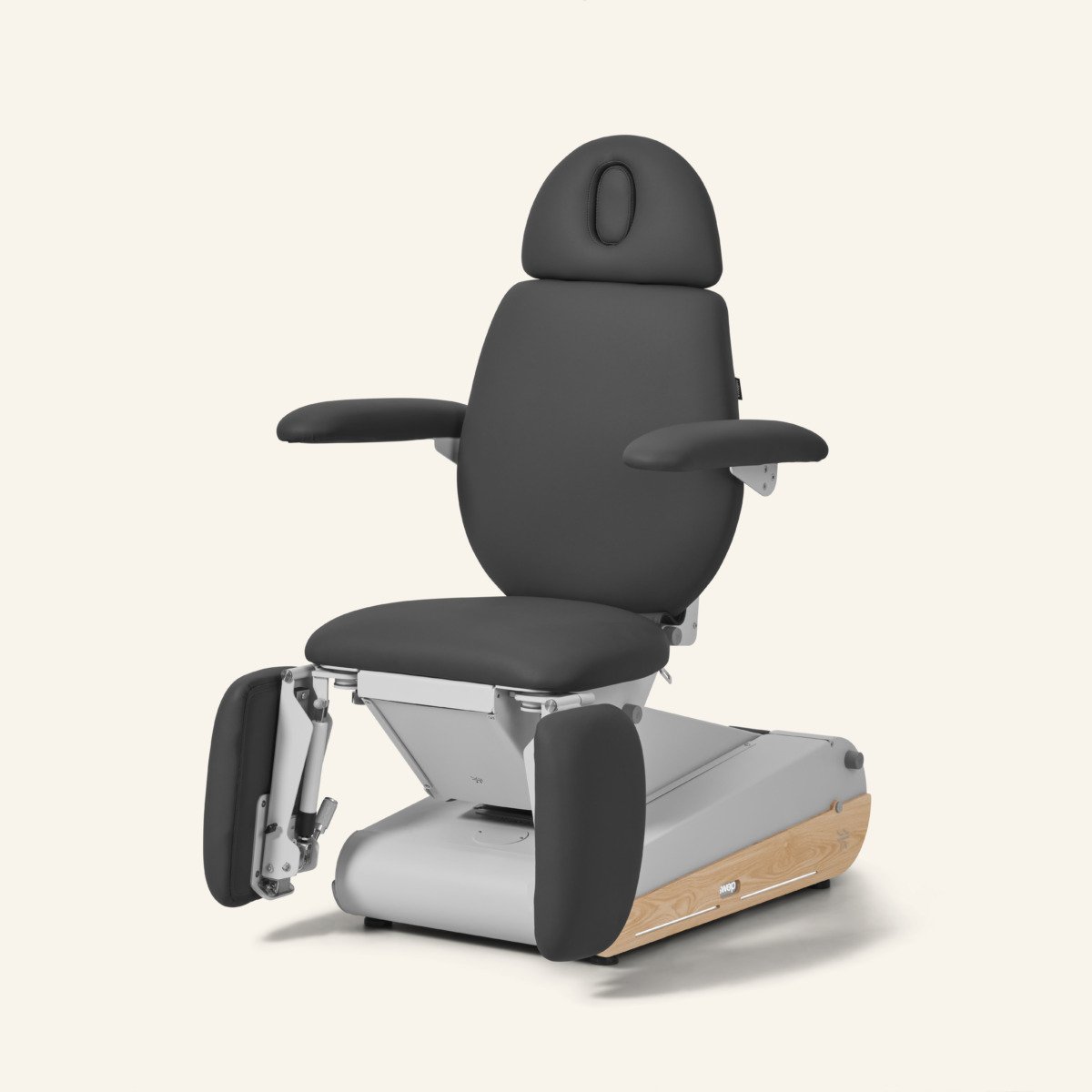 De SWOP P3 UP is een prachtige behandelstoel voor podotherapeuten, pedicures en tatoeëerders. Bladverwarming, comfortabele polstering, verstelbare armsteunen en 2 gescheiden beendelen met gasveer. 3 motoren voor verstelling van hoogte, inclinatie zitdeel, rugdeel door middel van een handschakelaar en 3 geheugenposities. Uniek design met LED verlichting en verwisselbare paneeltjes in diverse kleuren en materialen (oak meegeleverd).