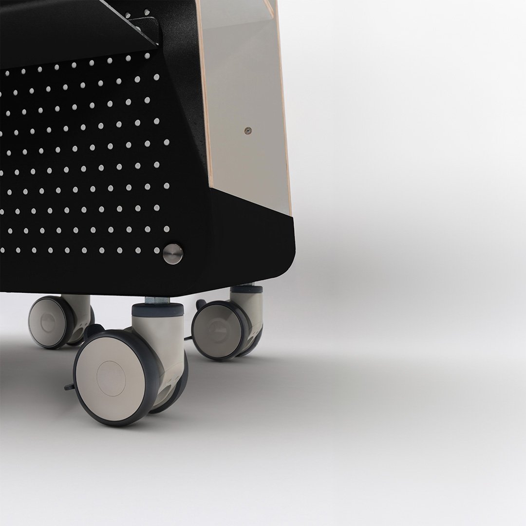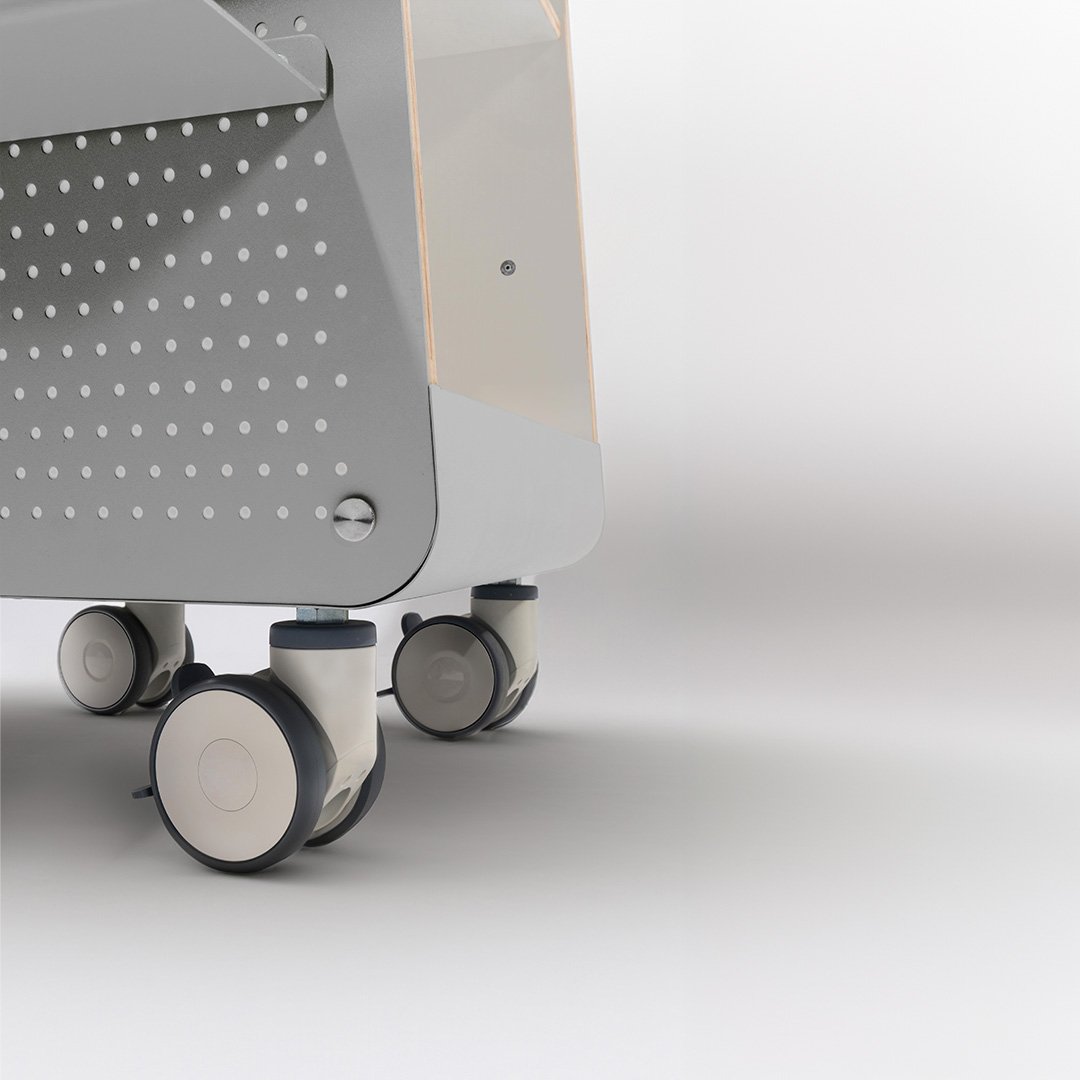 Je verrijdt en draait de Häp apparatenwagen eenvoudig met behulp van de 4 grote wielen en de handgrepen aan voor- of achterzijde.