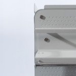 Slim ontworpen om de bedrading van de apparaten door de trolley te voeren en om een netsnoer op te rollen. Volledig uit gelakt staal en multiplex met een melamine laag.